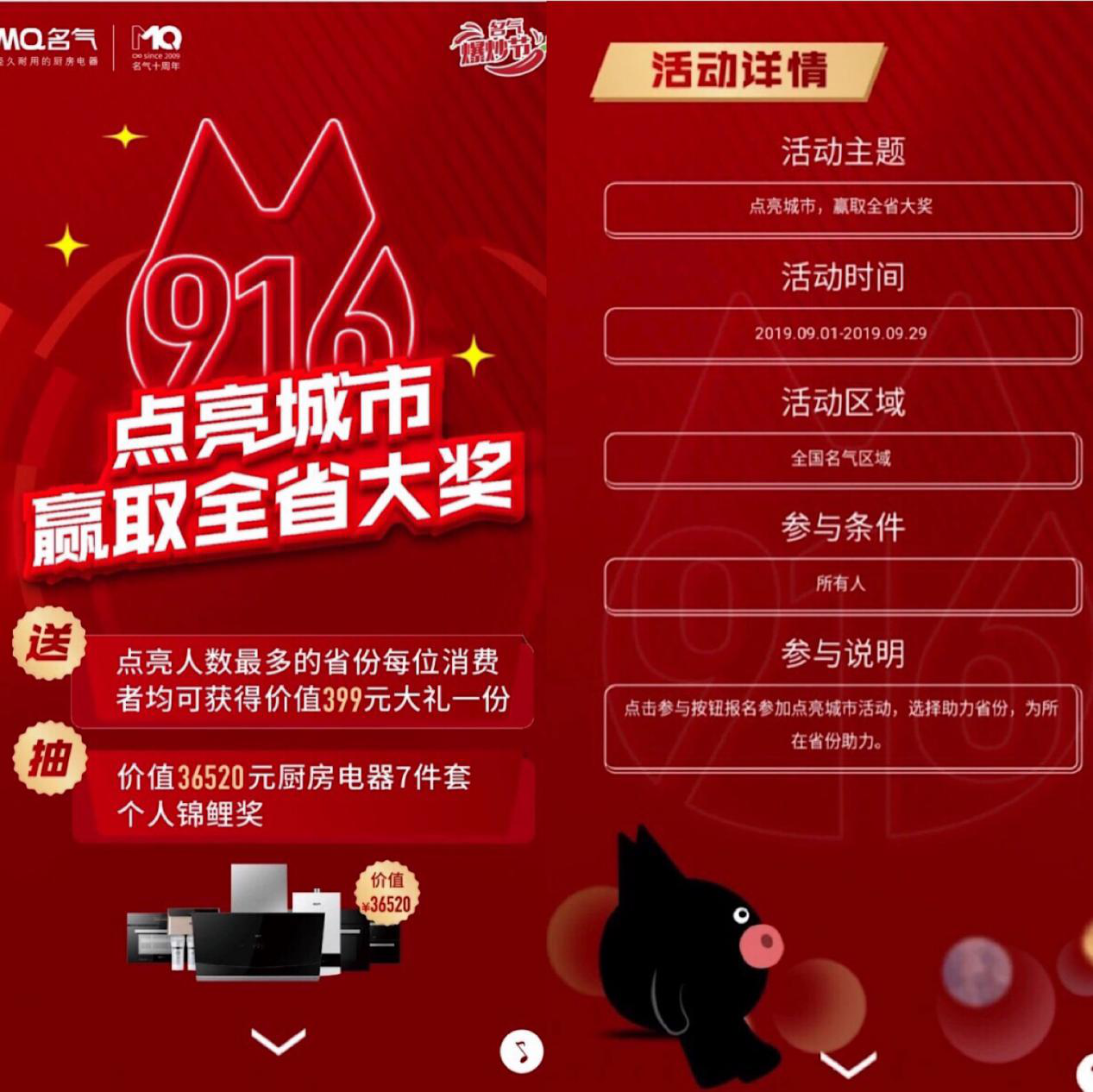狂歡月!2019年名氣電器“916爆炒節(jié)”全國強(qiáng)勢來襲! 來源:名氣電器官網(wǎng) 時間:2019年09月02日 近來,在消費多樣、需求多變、市場分散、競爭白熱化的格局背后無不透露出行業(yè)人的無奈和焦慮。面對經(jīng)濟(jì)下行的大環(huán)境,無論是供應(yīng)商還是經(jīng)銷商,都在尋求更有效的突破方式。然而,以“經(jīng)久耐用”為定位的二三線廚電品牌——名氣電器,在618電商日廚電品牌產(chǎn)品中成交排名前十。不僅業(yè)績一年更勝一年,在品牌營銷上也不斷升級,持續(xù)實現(xiàn)著業(yè)績與品牌美譽(yù)的雙豐收。在此一際,名氣電器開創(chuàng)性舉辦的第三屆“916爆炒節(jié)”強(qiáng)勢來襲,并推出了一系列營銷活動,引爆廚電圈。 布局新零售?全民大聯(lián)歡 本次916爆炒節(jié)在全國各地火熱進(jìn)行中,為廣大消費者帶來福音。名氣電器通過線上電商與線下7000多家網(wǎng)點相結(jié)合,讓信息透明化,?扁平化 ,實現(xiàn)雙向閉環(huán)引流。以大數(shù)據(jù)為核心,提供更具體驗感、人性化、多元素的服務(wù)。據(jù)了解,名氣爆炒節(jié)在全國各地均已拉開帷幕。超值名氣新品廚電,成為廣大消費者爭先選購的對象。 ? 活動豐富?新品嘗鮮 隨著名氣新一代集成灶在各電商平臺嶄露頭角,其獨特的設(shè)計理念,優(yōu)良的品質(zhì),深受廣大消費者青睞。作為本土高性價比廚電品牌,名氣電器為中國家庭帶來適合中國式爆炒的智能化廚電產(chǎn)品。本次活動福利覆蓋線上商城與線下所有門店,只要參與人人有份,全員有獎。更有機(jī)會獲得價值36520元的驚喜錦鯉大禮包!創(chuàng)意活動線上一發(fā)布,便引發(fā)網(wǎng)民的自覺參與和傳播,為活動的落地助力不少。 活動詳情圖 廚電行業(yè)市場競爭激烈,瞬息萬變。無疑,名氣已走在了前面,無論對產(chǎn)品的創(chuàng)新,還是對市場的布局。名氣電器40多年來“以經(jīng)久耐用的廚房電器”為定位,積累了一定的市場良好口碑。本次916爆炒節(jié)在全國各地火熱促銷,策劃一系列節(jié)能、惠民、創(chuàng)新的營銷活動,無疑幫助名氣品牌形象更深入人心,從行業(yè)眾多新秀中脫穎而出。 Last:名氣電器第四屆爆炒節(jié)為幸福生活放“價”Next:高鐵專列互動一波,看名氣電器如何在消費者...