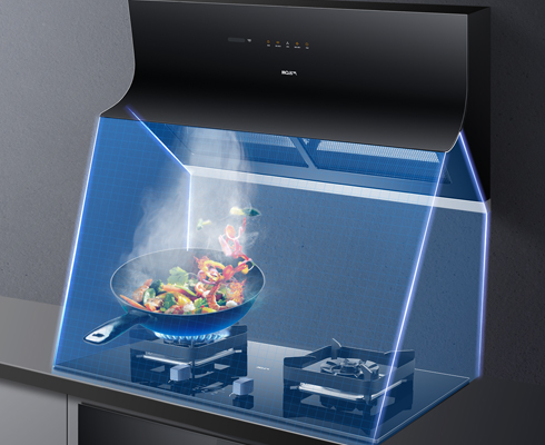 采用低負(fù)壓近吸技術(shù),吸煙路徑縮短10%,降低吸力損耗,895mm寬屏攏煙,減少油煙逃逸