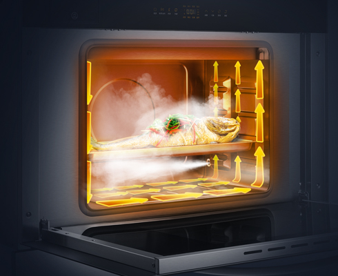 直噴100℃蒸汽,配合溫場與循環(huán),食物表面不濕塌;底部無冷凝,內(nèi)膽清潔久如新;循環(huán)新鮮蒸汽,還原食材本味