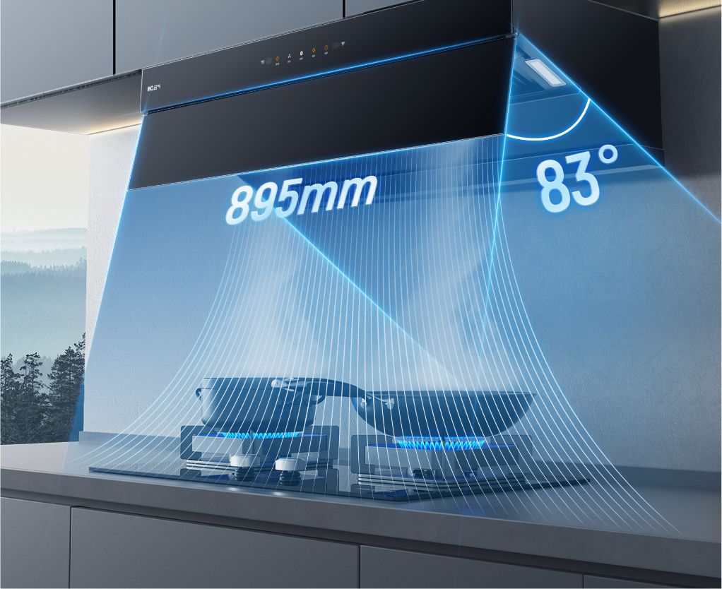 895mm廣翼攏煙屏,全面覆蓋烹飪區(qū)域,油煙升騰瞬間即刻捕捉