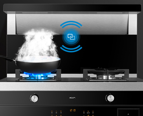 煙灶聯(lián)動(dòng)開啟,灶具點(diǎn)火,煙機(jī)自動(dòng)感應(yīng),瞬間吸走油煙